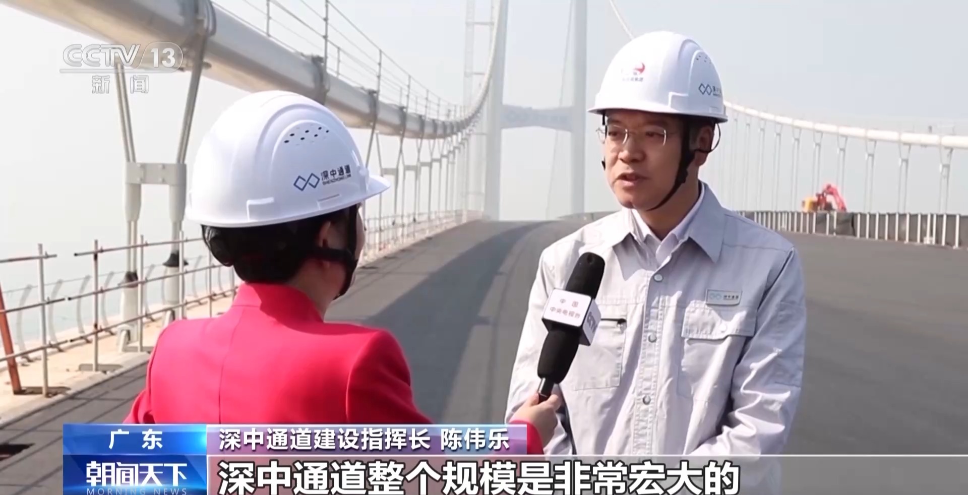 深中通道建设指挥长 陈伟乐:深中通道整个规模是非常宏大的,技术非常复杂,前期工作从2010年开始,做了8年的前期工作,2018年全线开工。形成了以 “钢壳—混凝土沉管智能浇筑装备及系统”等10大世界首创的装备,实现了“超强台风区超大跨悬索桥抗风御灾技术”等10项国际领先技术,这将会形成具有中国标准的跨海集群工程建设成套技术和中国方案,也将为建造其他的跨海通道或者海峡工程提供技术储备和管理经验,进一步推动我国在基础设施领域的智能建造、装备制造、智能绿色等产业链高质量发展。
