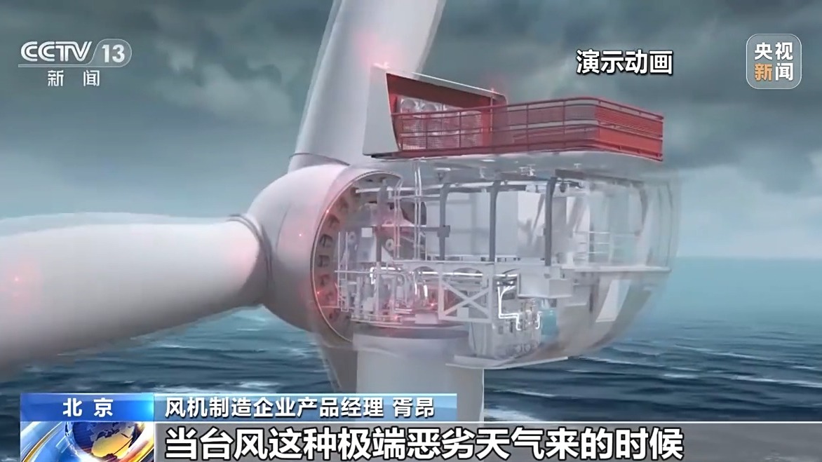 风机制造企业产品经理 胥昂:我们主要应用北斗以及5G,来实现风机最大化利用风资源,来实现发电量的提升;当台风这种极端恶劣天气来的时候,通过北斗卫星的一个信号传递,来实时控制风机的方向以及姿态,能够安全、有效度过整个台风的考验。