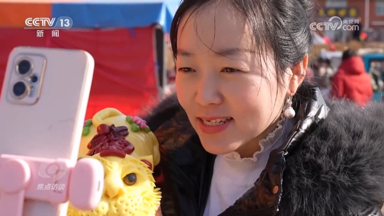胶东传统特色的花饽饽、冒着热气色香味俱全的海鲜烩饼、大锅煮的羊汤配上酥脆的千层饼,主播们想尽花样在网上卖力推销,也吸引来了各地消费者。他们不光在网上买买买,还专程来到大集,想亲身体验农村大集的氛围。