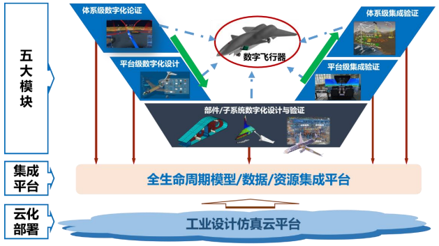 结合飞行器全流程研发管理和全生命周期模型驱动模型,将飞行器概念设计虚拟仿真系统、安世亚太公司PERASIM等多款自主研发的国产工业软件进行融合,实现了飞行器的云化设计,形成了集高校、科研院所、优质企业为一体的协作共享仿真云平台。