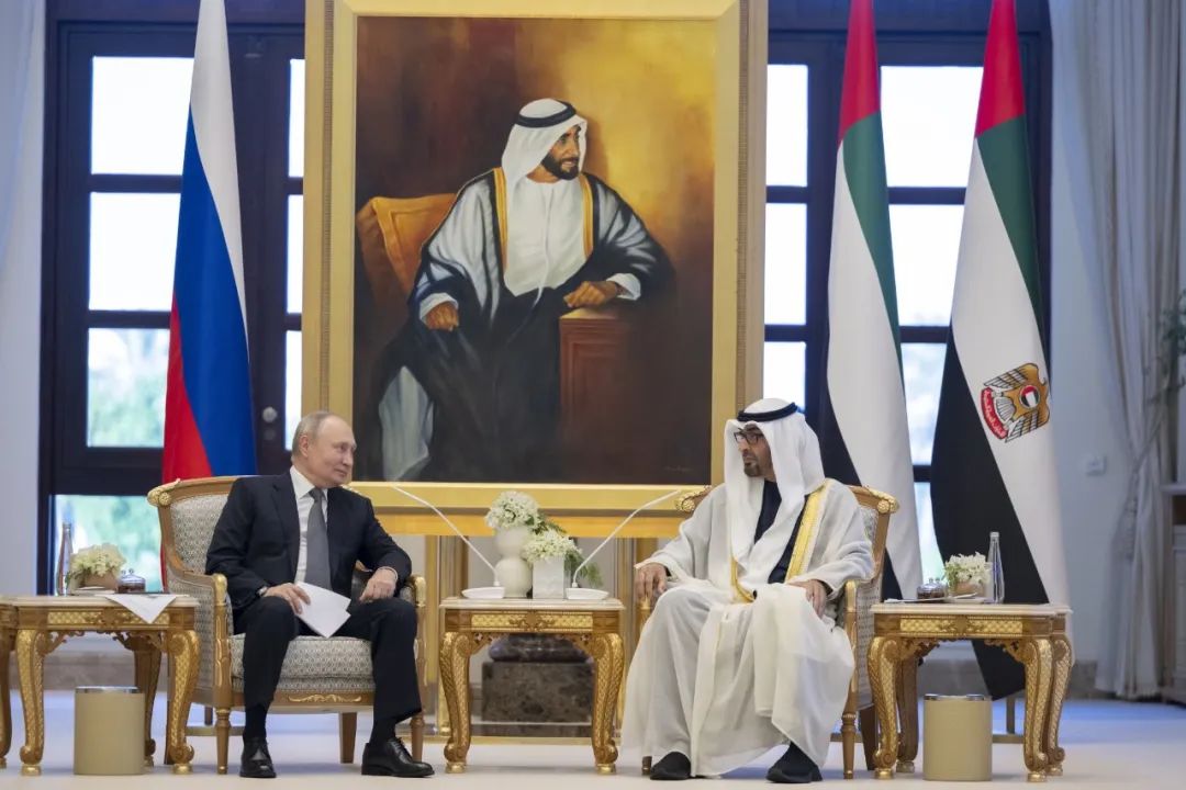 在普京与阿联酋总统穆罕默德的会见中,双方讨论了双边关系、巴以新一轮冲突、乌克兰危机等共同关心的地区和国际问题。