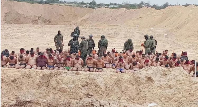 【环球网报道】巴以新一轮冲突持续,社交平台上近日流传的一些画面引起众多外媒关注。美国有线电视新闻网(CNN)、美国全国广播公司(NBC)、英国天空新闻网等多家外媒同日曝出,社交媒体流传来自加沙的多幅画面,内容疑为以色列军方大规模拘押当地男子,后者被要求脱光外套、只留贴身衣服,跪在或者坐在地上。CNN说,被拘押者被蒙上眼睛,有人还被装进了军车。上述媒体均表示,无法独立核实这些画面内容,事发具体情况和日期尚不清楚。