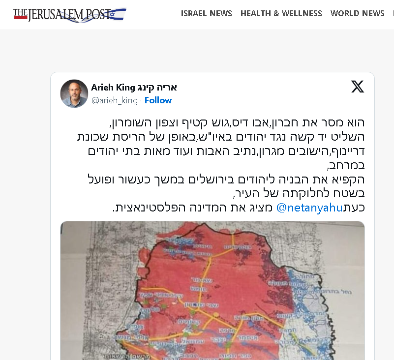 同时,耿直哥还通过核查后发现,这个网名为@arieh_king 的发帖账号,确实属于耶路撒冷市副市长Aryeh King。因为以色列国内多家主流媒体,比如《耶路撒冷邮报》,在先前关于这名副市长的其他报道中,都提到过这是他的账号。