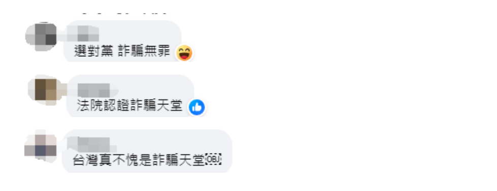 还有网友讽刺,“选对党,诈骗无罪。”“法院认证诈骗天堂。”“台湾真不愧是诈骗天堂。” ↓