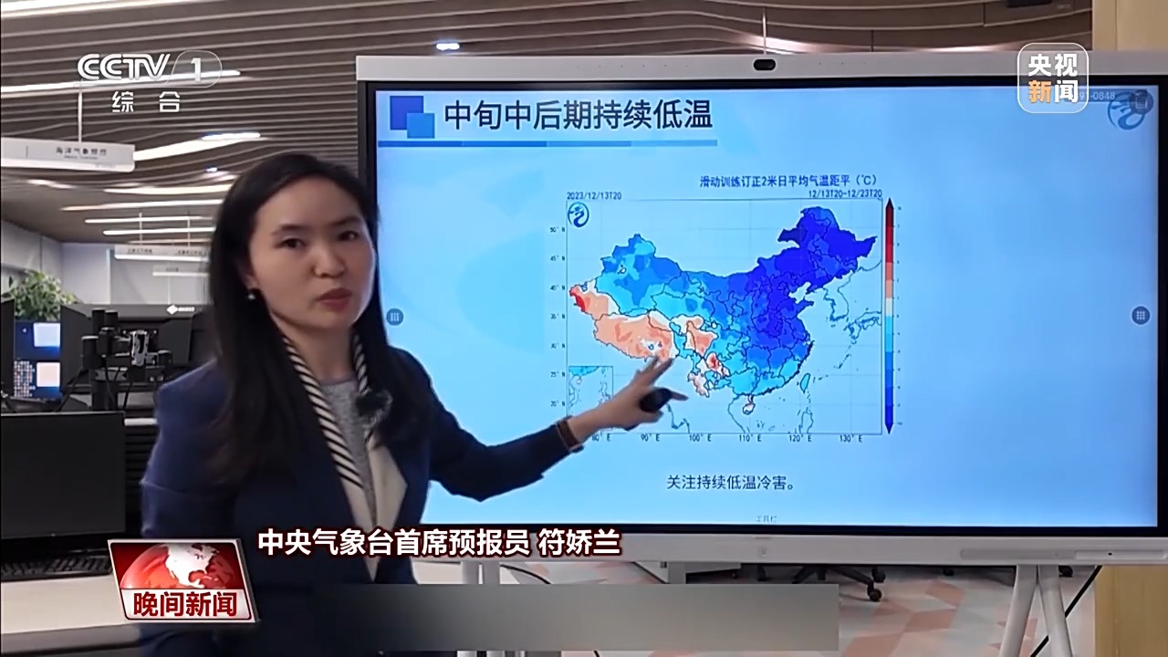 中央气象台首席预报员 符娇兰:受这两股冷空气影响,未来一段时间我国中东部大部地区气温是持续偏低的态势,特别是在长江中下游以北大部地区,最低气温可能较常年同期会偏低4℃以上,所以要特别关注这个持续低温冷害的影响。这次降温过后的话,可能在22日之后气温会出现缓慢的回升,中东部大部分地方的气温,将由长期明显偏低这样一个态势,转为一个较常年同期略偏低或者正常的情况。