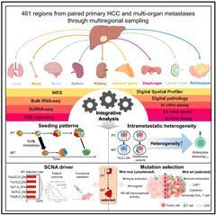 据悉,肝细胞癌(简称“肝癌”)是世界上最常见的恶性肿瘤之一,在我国尤为高发,每年新发病例和死亡病例均占全球近一半。手术切除是目前肝癌治疗的首选方式,但70%—80%的肝癌病人确诊时已发生肿瘤播散转移,为中晚期肝癌,失去了手术机会;即使手术切除,肝癌术后5年转移复发率高达60%—70%。肝癌的转移复发是影响病人长期生存的主要原因,并已成为进一步提高肝癌整体疗效的瓶颈。目前肝癌转移肿瘤的基因突变和分子表达全景图谱仍极度缺乏,肝癌在转移过程中的克隆选择等演化规律尚不清晰,导致肝癌转移病灶的临床诊疗仍然缺乏足够的理论指导。全面深刻认识肝癌转移复发的内在机制,探索更有效的干预新策略,已成为进一步提高肝癌病人总体生存率的关键课题。