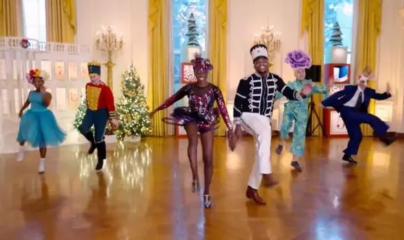 报道称,在视频中,表演者们在白宫内跳起踢踏舞。他们穿戴表演服饰以饰演经典芭蕾舞剧《胡桃夹子》中的角色。