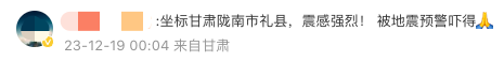 12月19日0时24分在甘肃临夏州积石山县发生3.9级地震,震源深度10公里,震中位于北纬35.73度,东经102.78度。