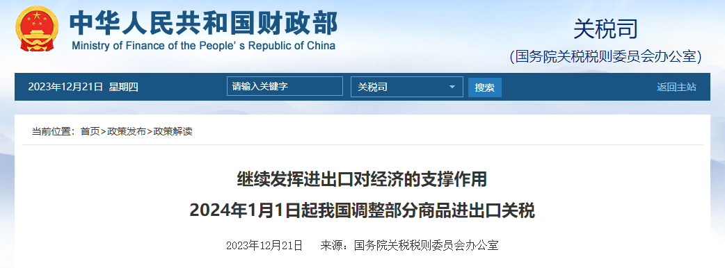 为继续发挥进出口对经济的支撑作用,更好履行关税在统筹国内国际两个市场两种资源中的重要职能,经第八届国务院关税税则委员会第一次全体会议审议通过,并报请国务院批准,国务院关税税则委员会发布公告,2024年将调整部分商品的进出口关税。