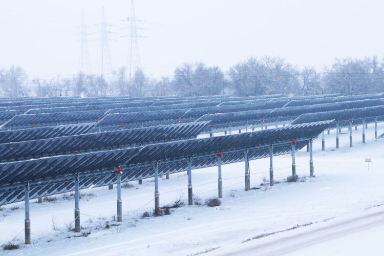 据基地相关负责人王润生介绍,太阳光经雪地、土地漫反射至光伏板背面,一方面太阳能可以转化为电能,另一方面发电过程产生的热量会融化光伏板正面的积雪。“我们基地占地面积达3万多亩,大面积人工清扫效率低,双面双玻光伏板能减少积雪覆盖,能有效提高雪天发电效率。”
