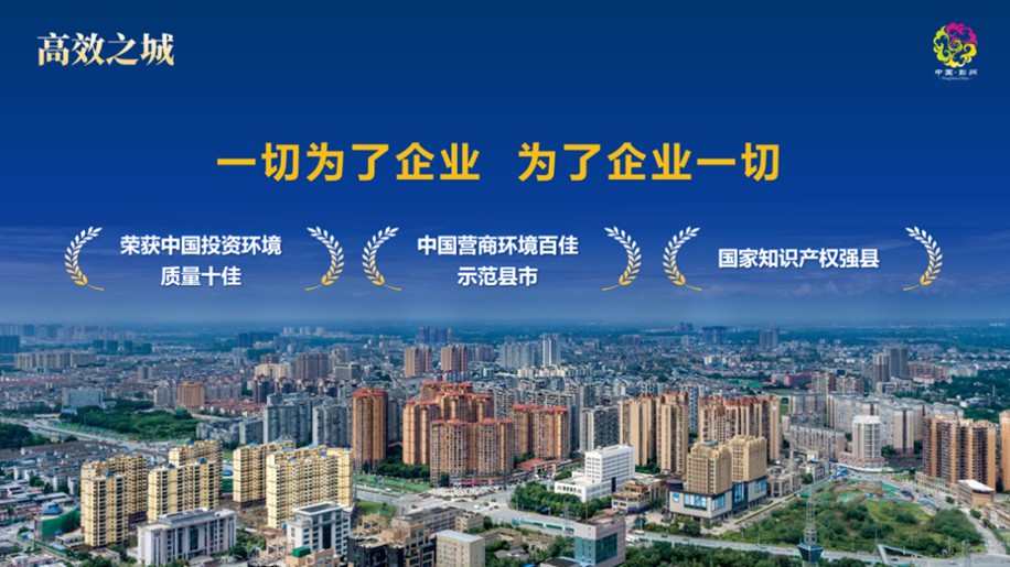 秉持“一切为了企业、为了企业一切”的理念,彭州市全心全意、拼尽全力,为企业、为项目、为人才营造一流发展环境,先后荣获中国投资环境质量十佳县、中国营商环境百佳示范县市、国家知识产权强县等系列荣誉。