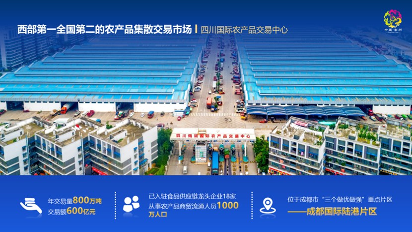★国家级蔬菜批发市场——四川国际农产品交易中心,年交易蔬菜水果800万吨、交易额600亿元,规模居全国第二、西南第一,已入驻永辉、雨润、老邻居、舞东风等食品供应链龙头企业18家。该交易中心所在的濛阳新城,是成都国际陆港的重要组成部分,同时也是成都市重点支持建设的24个片区之一。随着成都国际班列“东南亚—濛阳”专线开通,已成为我国西南内陆地区东南亚果蔬进口的前沿市场,进一步提高了彭州的人口吸附能力。