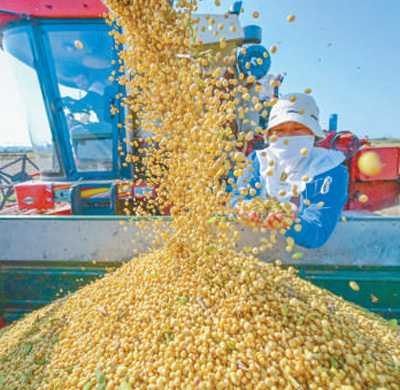 河南省洛阳市孟津区会盟镇下古村农民收获大豆。李卫超摄(新华社发)