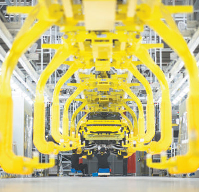湖北省武汉市经开区智能网联和电动汽车产业园内一家工厂的生产流水线。新华社记者 肖艺九摄