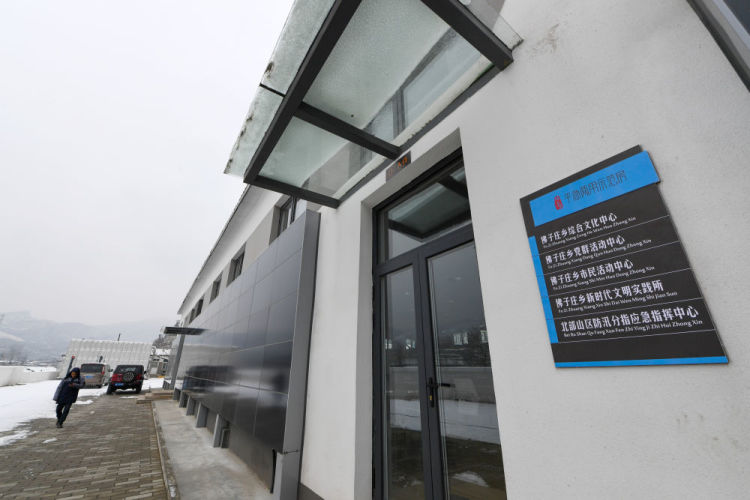 在北京市房山区佛子庄村拍摄的一座由体育馆改建而成的“佛子庄村零碳平急两用房”(12月12日摄)。这里过去是村民文化活动的空间,现在增加了储能、光伏、净水、应急发电、应急通信、石墨烯供热等设施,应急状态下可满足周边村民临时避险安置时的生活保障。新华社记者 鞠焕宗 摄