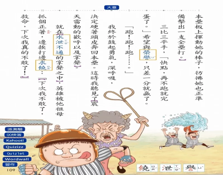 岛内媒体工作者杨秉儒在脸书发文称,该词句出自南一出版社的课本中医生作家侯文咏写的《梦幻全垒打》一文,讲述主角爱打棒球,祖母却要他多念书,某天主角打出全垒打(棒球术语),却在“水泄不通的掌声”中,被祖母抓个正着狠揍一番。杨秉儒说,文章是以儿童的笔触,通过顽童眼光所呈现出来温馨、活泼、风趣、动人的世界,当中词句误用、错置的安排,自然无伤大雅。但是,(为什么)拿这种文章来作为小学六年级的语文教材?