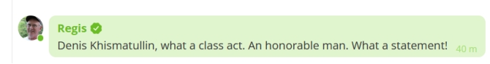 针对此事,有网友在RT的这篇报道下方评论道,“丹尼斯•基斯马图林,多么得体的举动。一个可敬的人。多好的表态!”