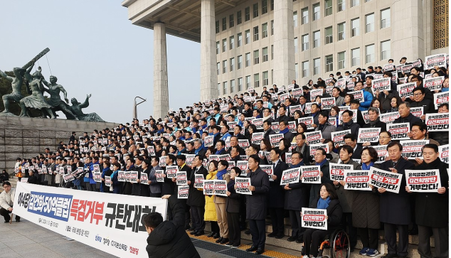 报道提到,共同民主党等4个在野党当天表示,一旦“双特检法”重新递回韩国国会,他们将在国会的“再表决”中再次通过该法案。在野党议员们还要求韩国执政党国民力量党的议员在表决中投赞成票。据报道介绍,这是因为再议表决通过的法案韩国总统不能再行使否决权,但再议表决需要三分之二以上执政党议员的赞成票才能通过。