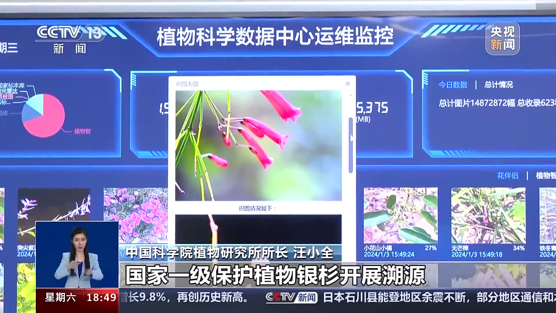 工作人员告诉记者,在植物大数据平台上,全国1000多种重点保护野生植物的情况,都可以在数据平台的大屏幕上,得到直观的体现。