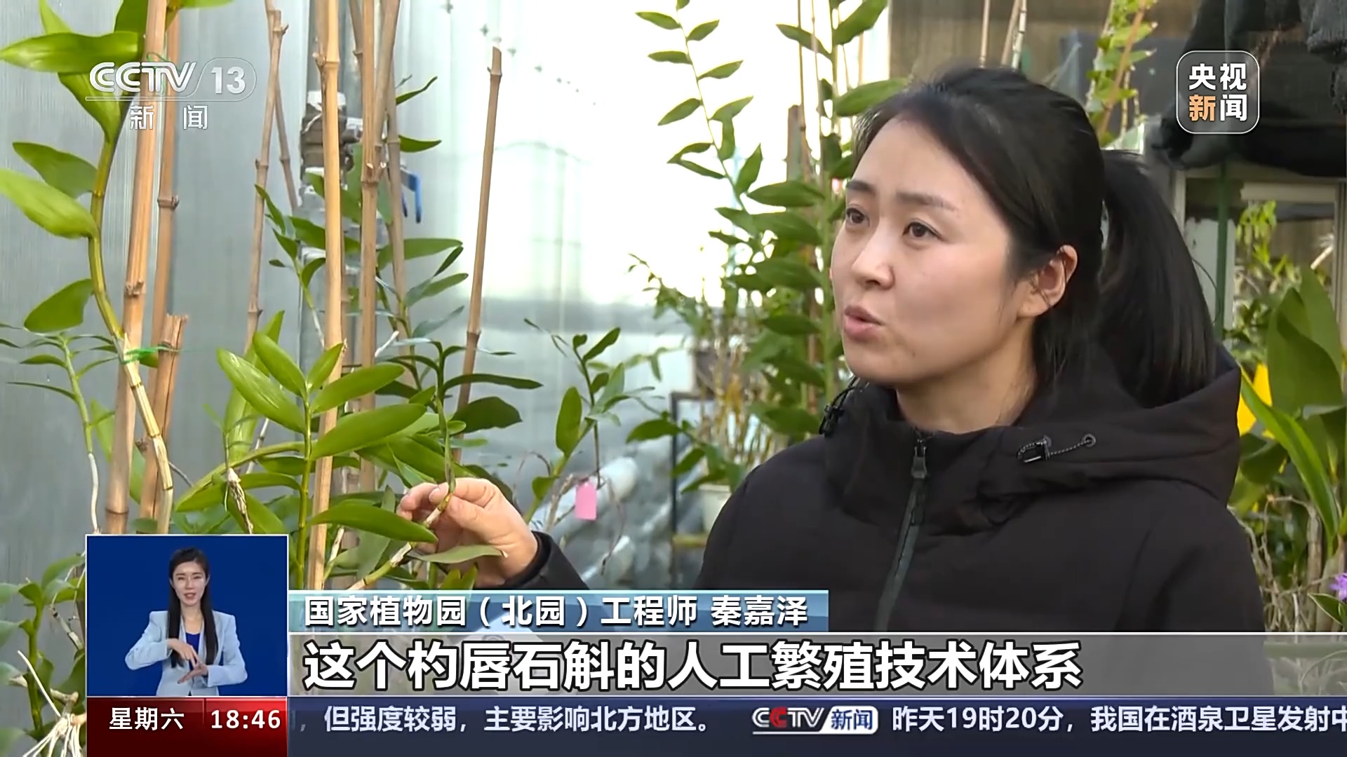 国家植物园(北园)工程师秦嘉泽:它在野外是属于濒危的一个状态,当下,我们已经成功建立了这个杓唇石斛的人工繁殖技术体系,然后也成功繁育出了1000多株幼苗。