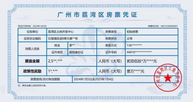 2024年1月5日,广州市荔湾区土地开发中心在石围塘征拆现场开出全市第一张房票,广州探索房票制工作迈出实质性的第一步。前一天,《广州市房票安置实施方案》经市政府审议通过,由此,广州正式成为国内首个探索房票安置政策机制的一线城市。