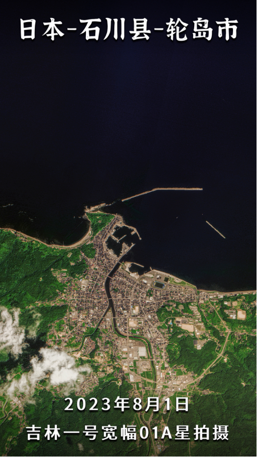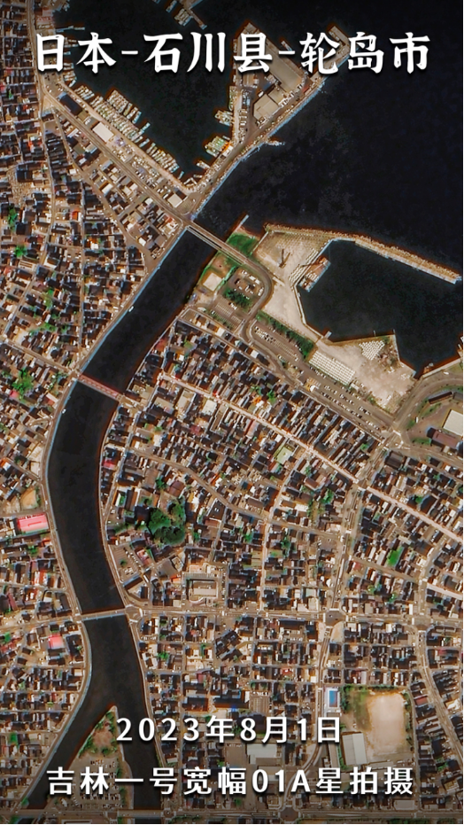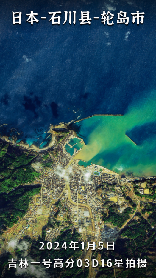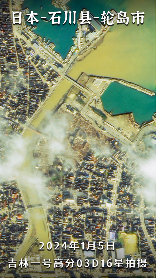 该组卫星图片由吉林一号高分03D16星于2024年1月5日拍摄,结合吉林一号宽幅01A星于2023年在当地获取的卫星影像对比显示,在地震之后,轮岛市沿海建筑受地震及次生灾害冲击,房屋及桥梁道路等倒塌严重,轮岛市中心被烧毁部分过火面积约0.048平方公里。河底沉淀物因地震而搅动、出现土壤液化等导致水体变浑的情况。