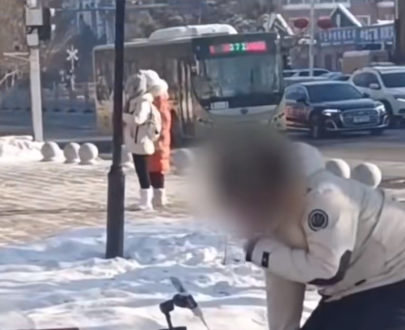 画面显示,该男子跪在地上