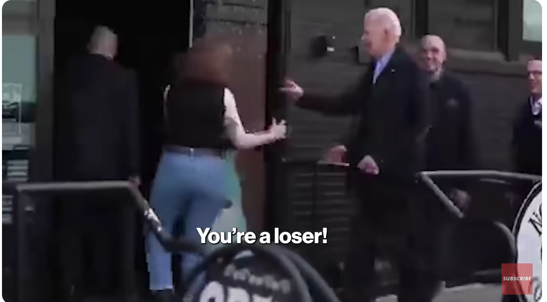 报道称,拜登当时正在工作人员陪同和护送下走进宾州阿伦敦市一家自行车店,他还招手向一旁民众示意,人群中有人发出尖叫,另有人高喊“回家吧,乔”“你是个失败者”!