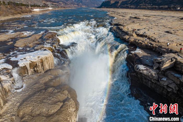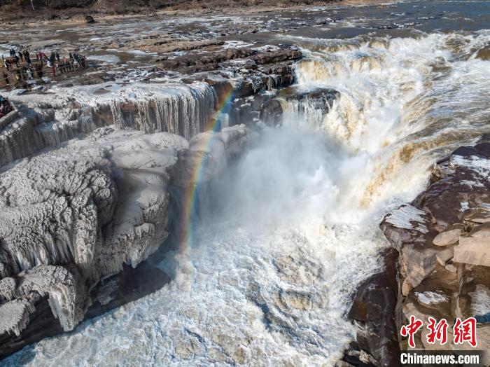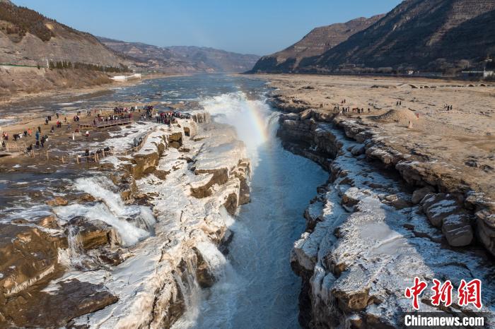 黄河壶口瀑布:冰瀑与彩虹“同框”