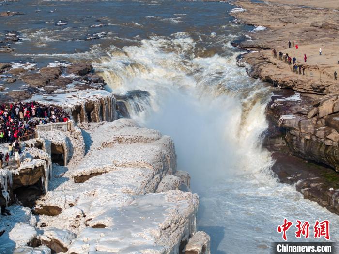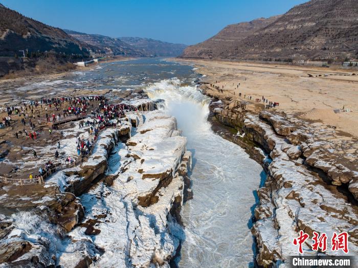 位于秦晋大峡谷的黄河壶口瀑布冬意正浓。壮美飞瀑、晶莹冰挂、霓虹戏水以及冰龙等景观,为游客提供了多样赏景体验,吸引各地游客纷来沓至。