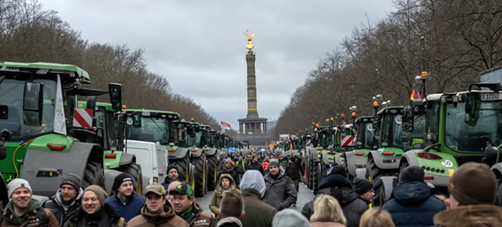 法新社报道称,超过5000辆拖拉机当天鸣着喇叭堵塞了柏林一些街道,林德纳在抗议现场为德国政府有关提议辩护,称这些提议关乎“我们如何一起摆脱困境”。