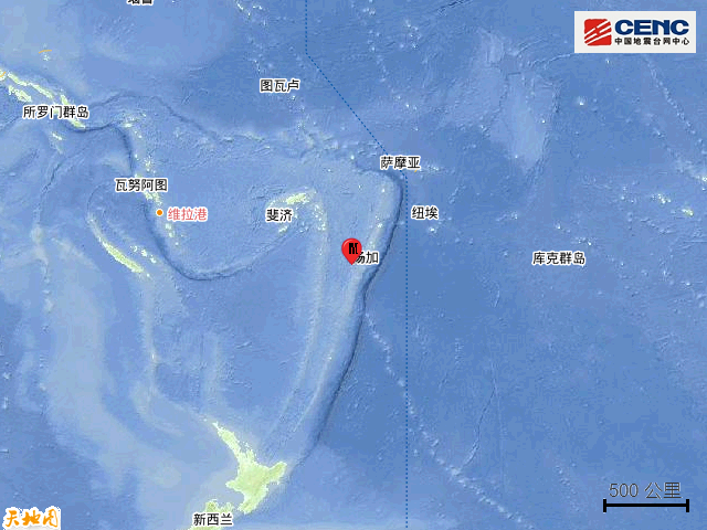 周边城市: 震中200公里范围内有1座大中城市,最近为努库阿洛法(Nukualofa),距震中约125公里。