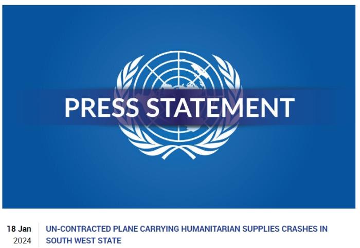 联合国正在与签约航空公司以及地方当局合作调查坠机事件。