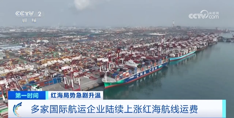 1月15日,法国达飞海运集团宣布,该公司从亚洲到地中海地区的集装箱运费将较1月1日的水平上调最多100%,40英尺标准集装箱运费从3000美元提高到6000美元。此前,丹麦马士基航运集团、德国赫伯罗特公司、地中海邮轮公司等多家航运企业都表示,从今年1月1日起,对大量受波及影响的航线再额外增收费用。