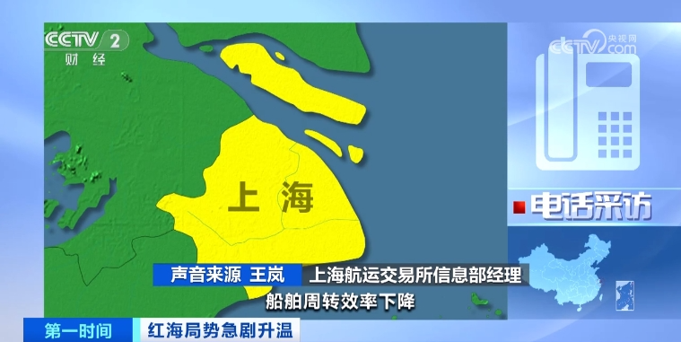 上海航运交易所信息部经理 王岚: 部分船舶选择绕道好望角,船舶周转效率下降,运力短期内出现了紧张的情况。欧洲、地中海航线运价上涨、运力紧张的局势也波及了北美航线,加上巴拿马运河水位偏低,通行效率下降,所以北美航线运价也随之上涨。