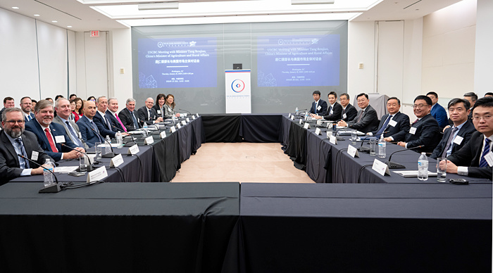 当天下午,唐仁健出席与美农业商协会和企业代表对话会并发表主旨演讲。对话会由美中贸易全国委员会会长艾伦主持,美国科恩集团董事长兼首席执行官科恩等11位代表发言。会前,唐仁健会见艾伦和科恩。
