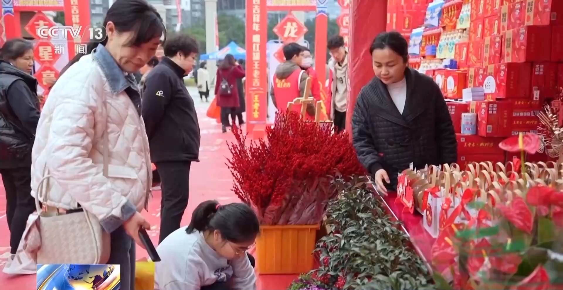 造型各异的鲜花盆栽是不少市民的首选。在入口处的年宵花摊位,颜色艳丽、寓意美好的鲜花吸引了不少人购买。此次年货节将一直持续至1月31日。