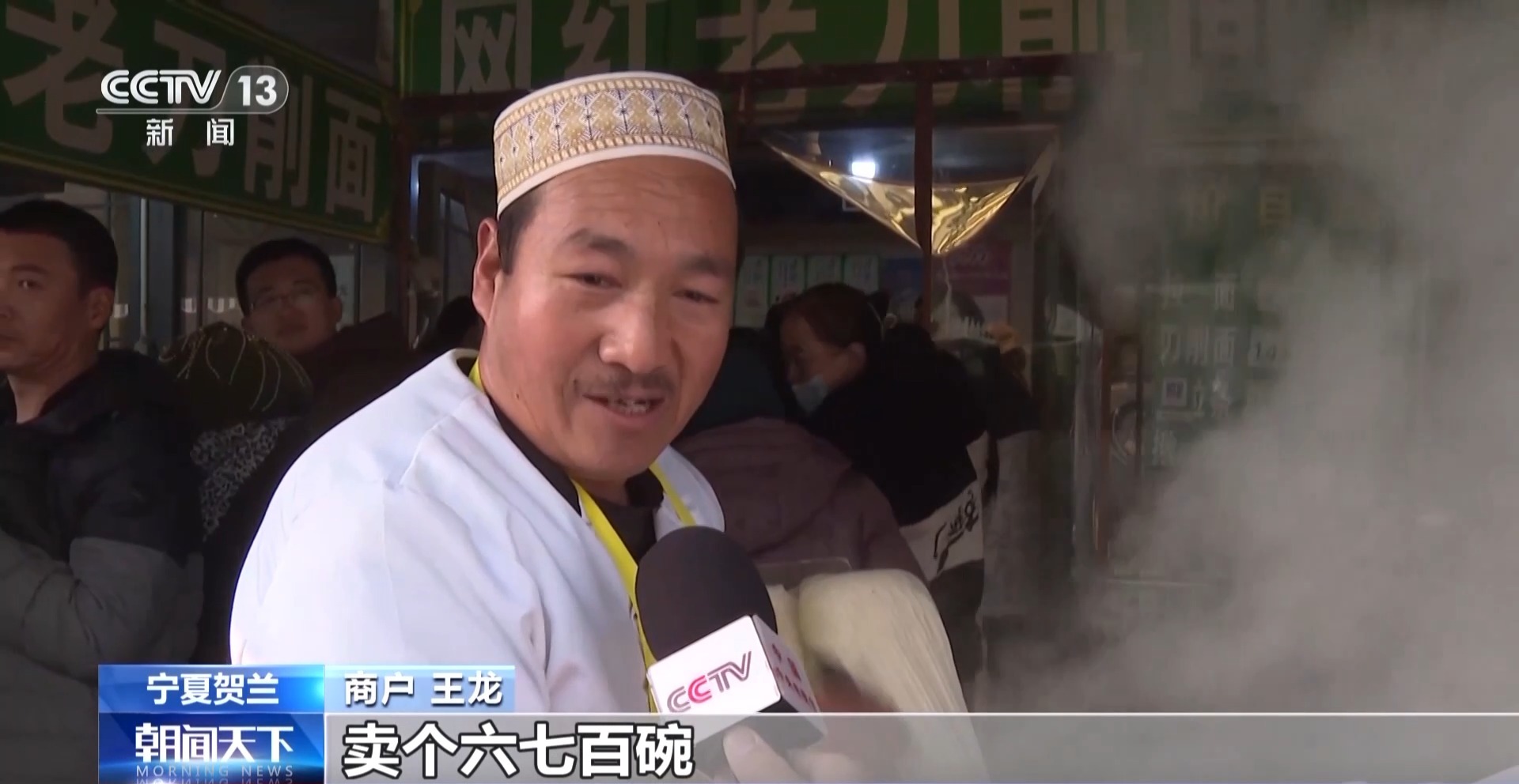 总台记者 何凌飞:来金贵大集,我们感受到了浓浓的烟火气息,吃一口暄软的糖麻丫,来一碗热腾腾的刀削面,用我们宁夏当地话说MIA气(美气)的很。