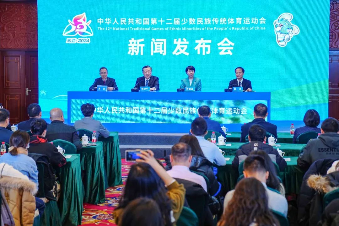 1月19日,国家民族事务委员会、国家体育总局和海南省、三亚市人民政府在北京举行中华人民共和国第十二届少数民族传统体育运动会新闻发布会。国家民委副主任郭卫平、海南省副省长尹丽波、国家体育总局宣传司司长高超、三亚市市长陈希出席发布会并启动运动会官方网站上线。