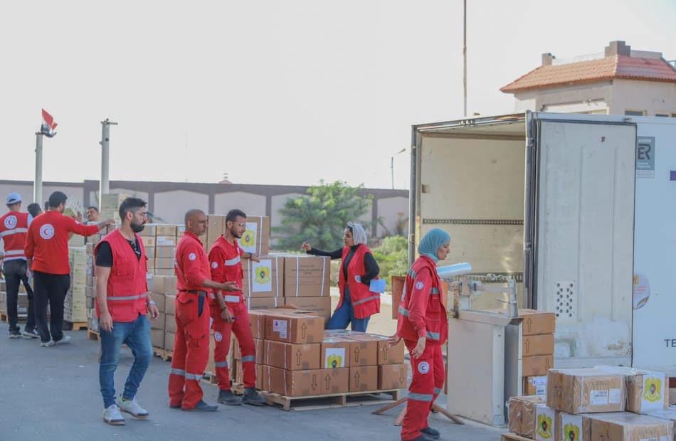 埃及红新月会称21日向巴勒斯坦红新月会移交80辆运载援助物资的卡车