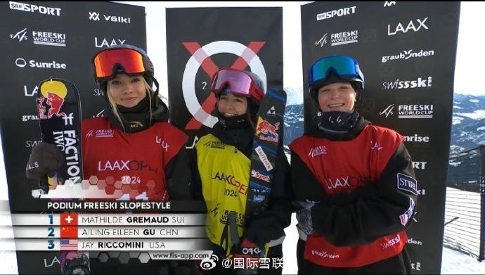 在21日于瑞士莱克斯举行的国际雪联自由式滑雪坡面障碍技巧世界杯分站赛中,中国选手谷爱凌获得女子亚军。
