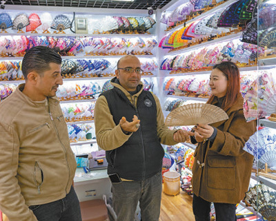 在义乌国际商贸城,外国客商忙着选购工艺饰品。