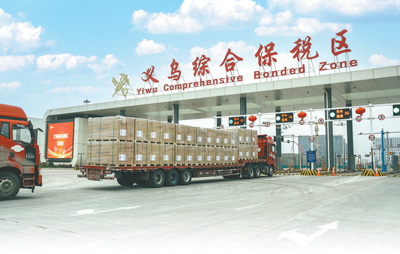 集卡车驶入义乌综合保税区。