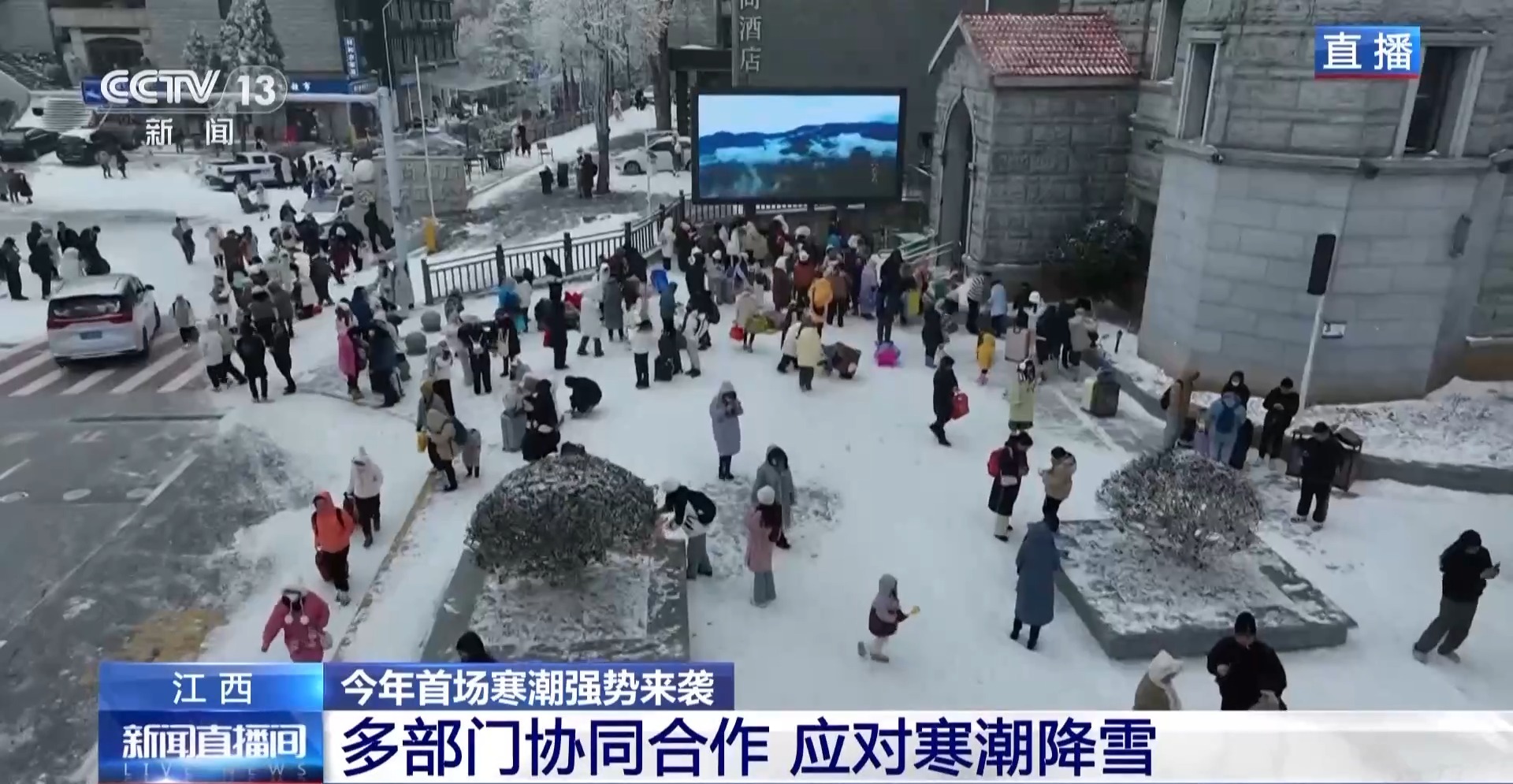 总台记者 易文韬:我目前所在的位置就是九江庐山牯岭镇,江西的这场降雪是从昨天晚上开始的,江西西北部地区出现了中到大雪的天气,江西省气象厅在早前已经发布了寒潮蓝色预警信号,全省最低气温将下降8℃以上,其中江西北部、中部的部分山区气温将降至最低零下8℃。