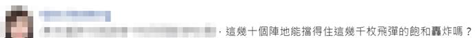 相关消息传出后,引发一些岛内网民关注。有网民对台军此举提出质疑,称“(台军)这几十个阵地能挡得住几千枚导弹的饱和轰炸吗?”