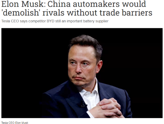 马斯克还补充道,如果没有贸易壁垒,中国汽车制造商将“几乎干掉”外国竞争对手。他说,“中国汽车公司非常好”。