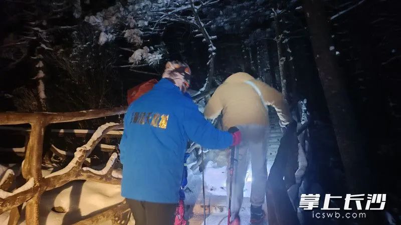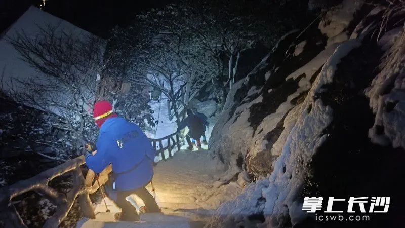 “下去路上台阶不平整有陡坡,加之下过大雪,结了坚硬的冰,比起平常更不好走。”据酒店负责人介绍,从山顶处到半山腰被困者位置,平常步行都需要两个小时。“天气太冷,我们担心被困大学生的安全,必须尽早找到他们。”杨浩回忆,他和队友李盛民、肖翔、黄新胜都有相对丰富的专业知识与救援技能,此次登山拉练也带齐了各类装备。24日0时左右,几人迅速小跑下山,原本需要两个小时的路程,他们硬生生在50分钟内走完。