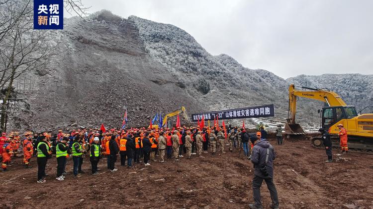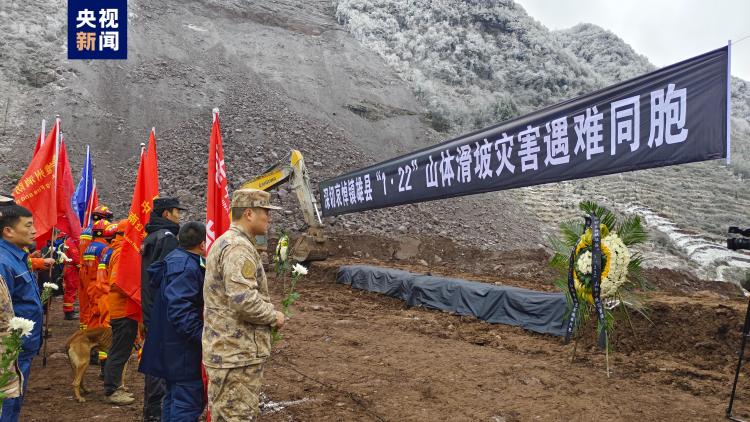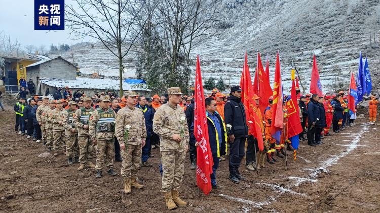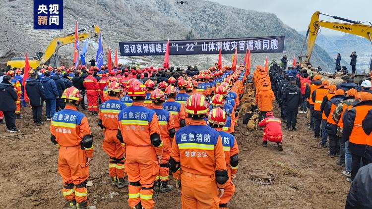 1月26日上午,深切哀悼云南镇雄县“1·22”山体滑坡灾害遇难同胞仪式在塘房镇凉水村山体滑坡现场举行。