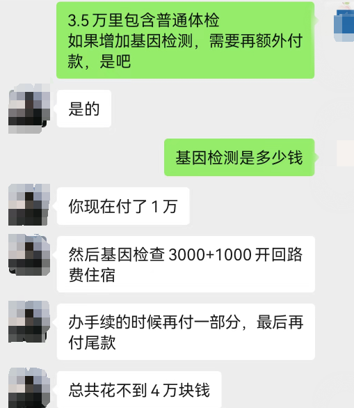 王某曾提出,除了普通体检,还需要梁先生支付包括基因检测、路费住宿、手续尾款在内的费用共计约4万元。梁先生在之后的交流中意识到自己可能被骗,于是向警方反映情况。