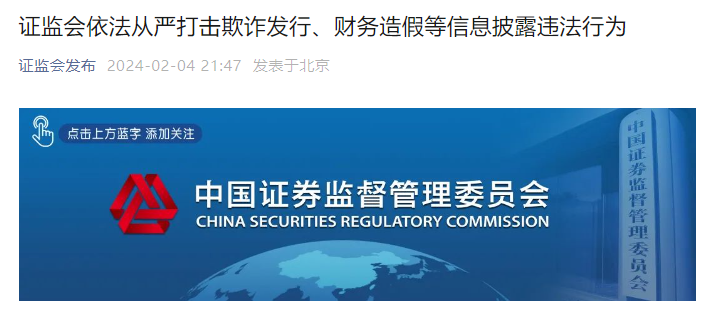 同日,证监会发文《证监会依法从严打击欺诈发行、财务造假等信息披露违法行为》,再次强调让造假者“倾家荡产、牢底坐穿”。